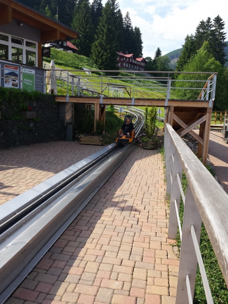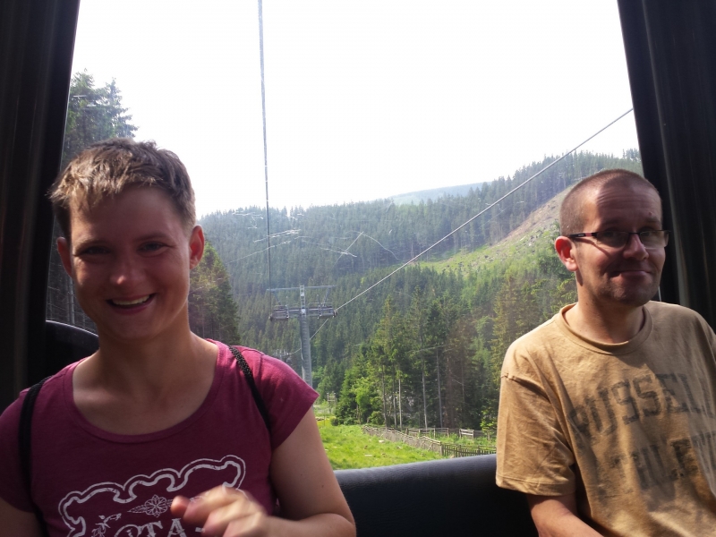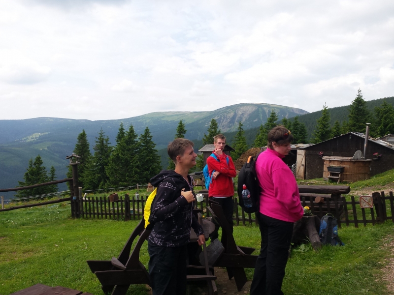 Další den bylo krásné počasí. Vydali jsme se autobusem do Pece pod Sněžkou s úmyslem vyjet lanovkou na Sněžku. Bohužel z důvodu silného větru lanovka končila ve stanici Růžová hora. Nedaleko stanice jsme poobědvali ve stylové restauraci místní speciality a vydali se pěšky krásnou přírodou zpět do Pece, kde si někteří vyzkoušeli jízdu na bobové dráze. Občerstvili jsme se v kavárně a vydali se na zastávku busu. Čekání jsme si krátili různými slovními hrami. K večeři jsme si opekli špekáčky.